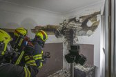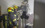 Um diese vollständig ablöschen zu können, mussten mehrere Teile der Wand geöffnet und entfernt werden. Mittels Wärmebildkamera konnten alle Glutnester lokalisiert und abgelöscht werden.