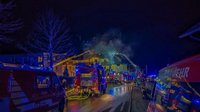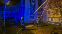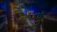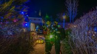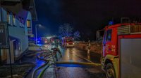Die Lageerkundung durch OBI Benjamin Frech ergab einen Zimmerbrand im Obergeschoss. Die Alarmstufe wurde erhöht und weitere Kräfte nachgefordert, zugleich begann ein Atemschutztrupp mit der Brandbekämpfung von Innen. Die weitere Mannschaft führte Löschmaßnahmen im Außenbereich durch, erste Flammen schlugen bereits durch die Dachhaut nach außen.