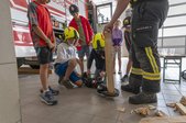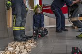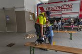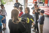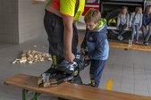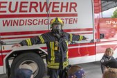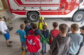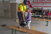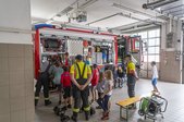Anschließend stellten wir die Atemschutzausrüstung vor. Besonders begeistert zeigten sich die Kinder, als sich einer unserer Kameraden in einen Vollhitzeschutzanzug kleidete – ein echter Hingucker!