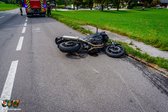 Ein Motorradfahrer ist auf einen links abbiegenden PKW aufgefahren und kam zu Sturz. Die Aufgaben der Feuerwehr beschränkten sich auf die Absicherung der Unfallstelle, dass Binden von ausgelaufenen Betriebsmitteln und dem Reinigen der Fahrbahn.