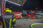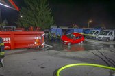 Um die Kühlung noch effektiver zu gestalten, wurde das Fahrzeug mittels Seilwinde schräg aufgestellt. Nach erfolgreicher Temperaturkontrolle konnte das E-Fahrzeug schließlich in die Mulde verladen und sicher abtransportiert werden.