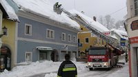 Einsatz des Katastrophenzugs aus dem Bezirk Kirchdorf um die Dächer von der Schneelast zu befreien. Die Feuerwehren standen über tage im Dauereinsatz.